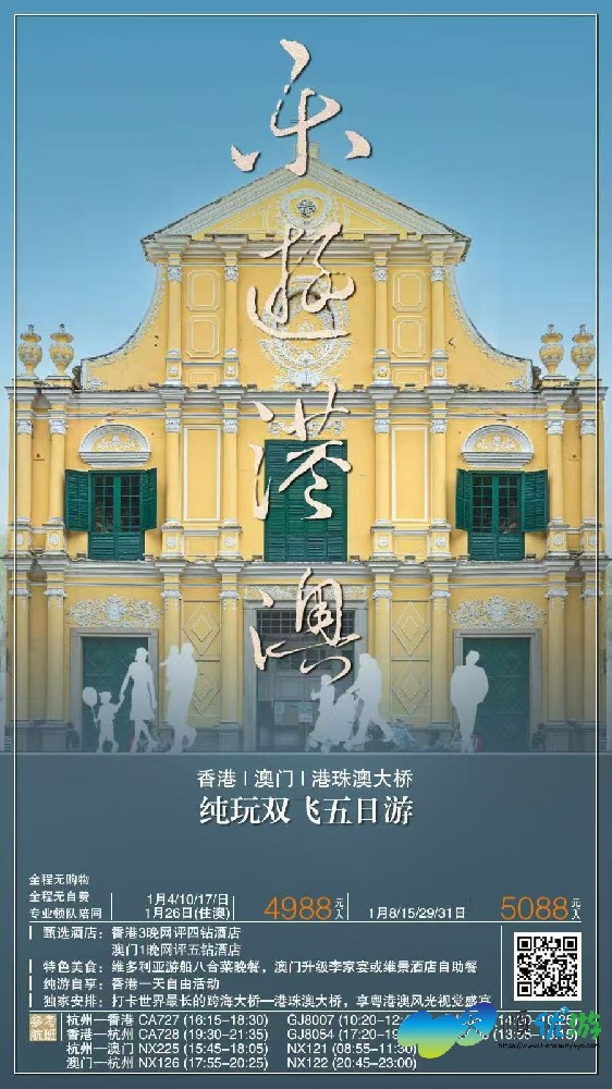 【香港|澳门|港珠澳大桥纯玩双飞五日游】